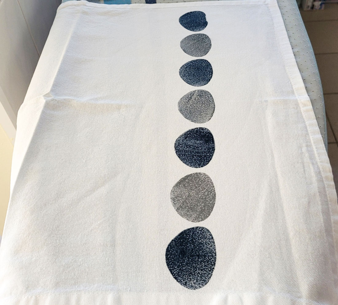 Alles Weitere ist Deiner Phantasie überlassen. Du kannst monochrom oder ganz bunt arbeiten. Du kannst mit dem Schwamm über den Stoff wischen oder mit einem Model eine ganze Fläche füllen. Du kannst Bordüren und einzelne Motive drucken. Blaudruck ist eine endlos kreative Technik, die nur weißen Stoff braucht.